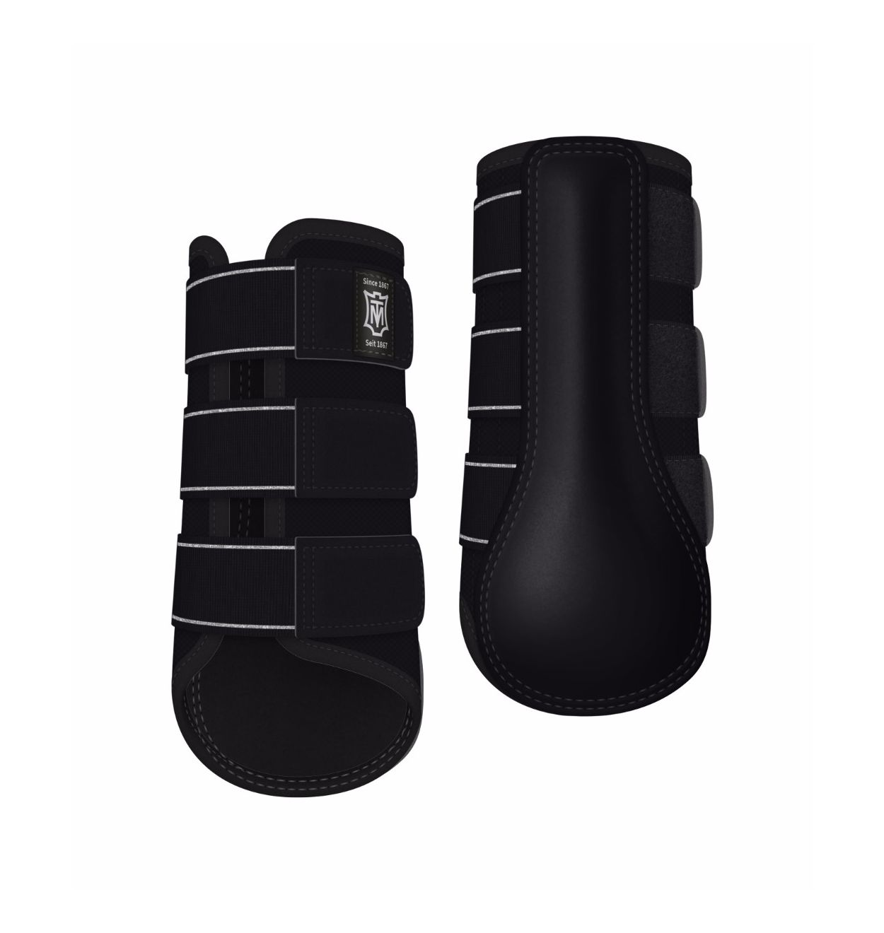 The insides of the hard shells of the Professional boots are made of highly resistant ABS plastic, while the tough outer layer is made of quality leather. The hard shells are designed to avoid touching the fetlock joint. Furthermore, MATTES has designed the lower edges to be wide enough that they cannot touch the pasterns; the boots are deeply cut away over the outer edge of the fetlock joint.