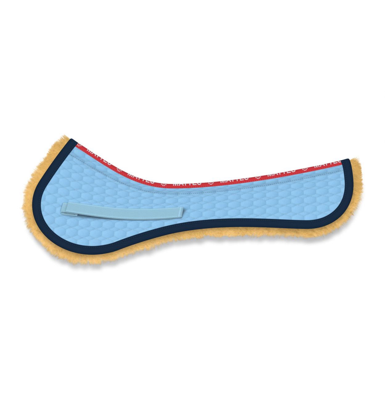 The MATTES half-pad is available in general purpose, dressage and show jumping styles in sizes S, M, L and XL. You are free to choose the design of the outer side: without lambskin padding, with lambskin padding and trim at the front, with lambskin padding and trim at the back and with lambskin padding and trim at the front and back. The underside of the half-pad can either have no lambskin at all, or a lambskin lining beneath the saddle area. The lambskin is available in more than 30 different colours.
