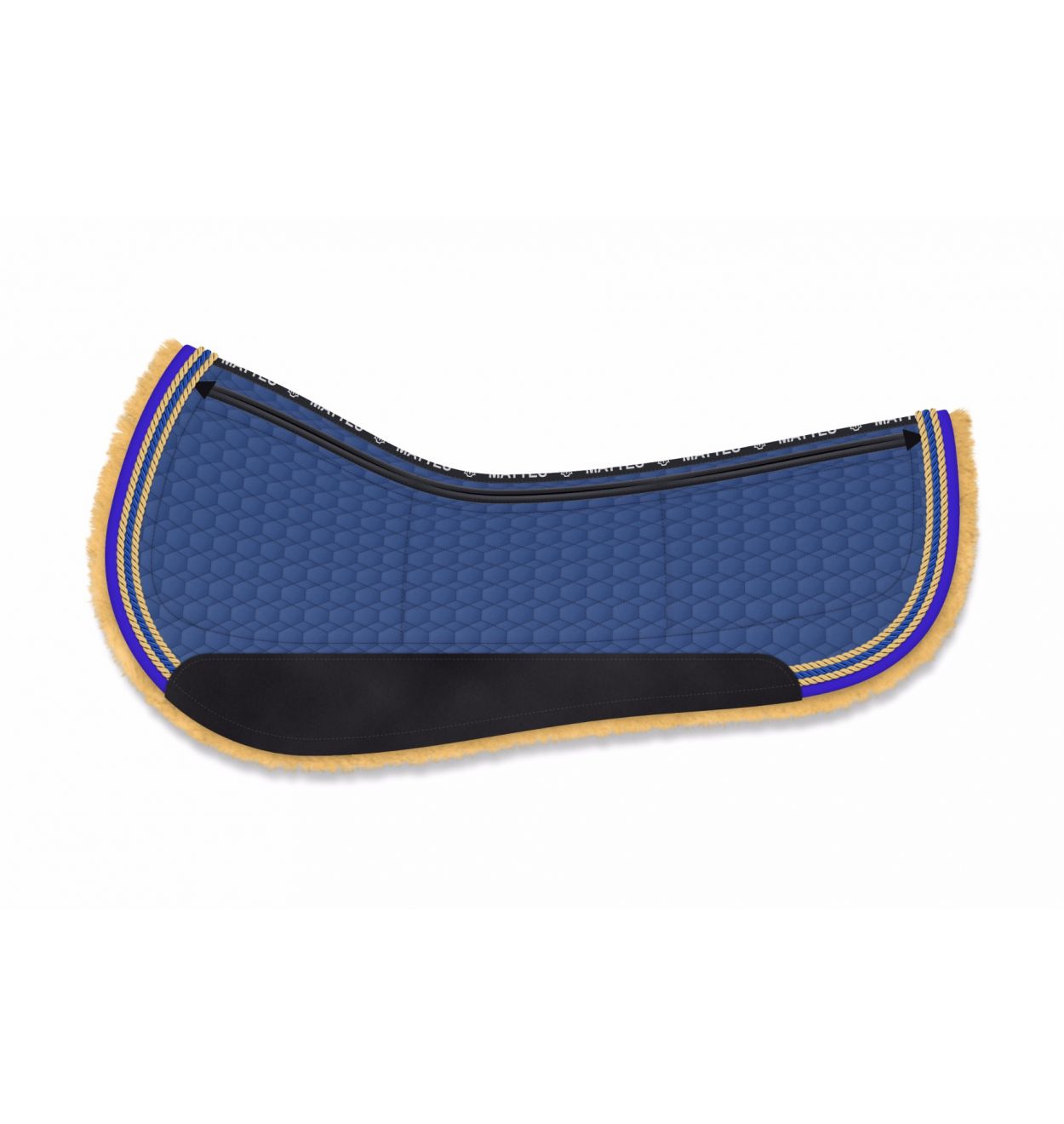 The MATTES Round Western pad is available in sizes S, M , L, XL and XXL. The width of the sides can also be altered to suit your needs. We recommend full lambskin lining in one of more than 30 different colours across the whole underside, but the Round Western pad is also available without the lambskin lining if you prefer. The wear leather is available in black, brown and champagne. The top band, binding and up to three rows of decorative piping are available in almost 50 colours.